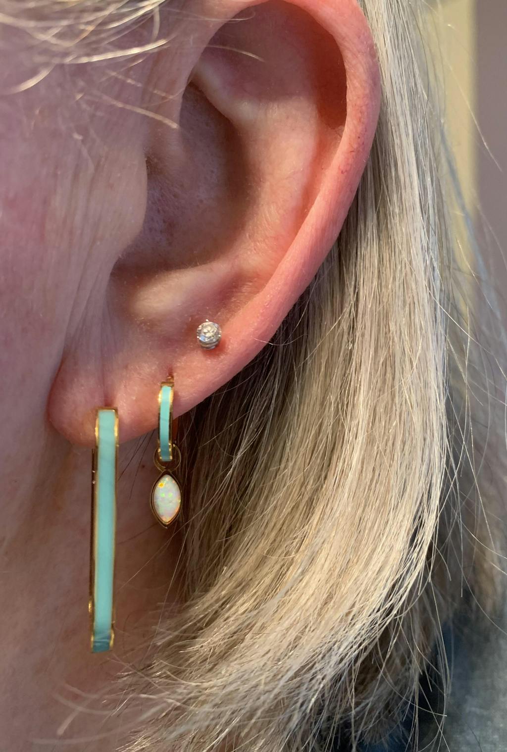 • ASTM F-67: Pure, unalloyed titanium. This is the safest metal for sensitive ears because it is the least likely to cause a reaction. We use this for almost all of our earrings.